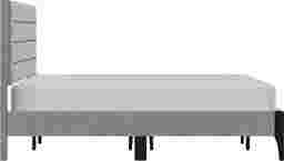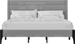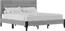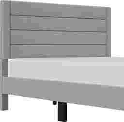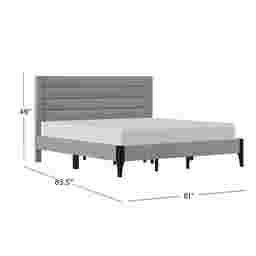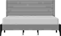 The Harrye headboard of this king platform bed boasts horizontal channel tufting that lends a sleek aesthetic to this piece. These lines run the width of the bed, stopped only by a single vertical tuft on each side of the headboard which further accentuates the clean silhouette. Fully upholstered in a chic light gray except for the two jet-black legs of the footboard, this piece showcases contemporary modern design at its best. A box spring isn't required. Mattress required; not included. Customer assembly is required.