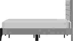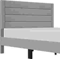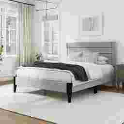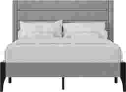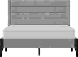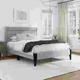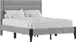 The headboard of this Harrye queen platform bed boasts horizontal channel tufting that lends a sleek aesthetic to this piece. These lines run the width of the bed, stopped only by a single vertical tuft on each side of the headboard which further accentuates the clean silhouette. Fully upholstered in a chic light gray except for the two jet-black legs of the footboard, this piece showcases contemporary modern design at its best. A box spring isn't required. Mattress required; not included. Customer assembly is required.