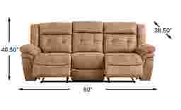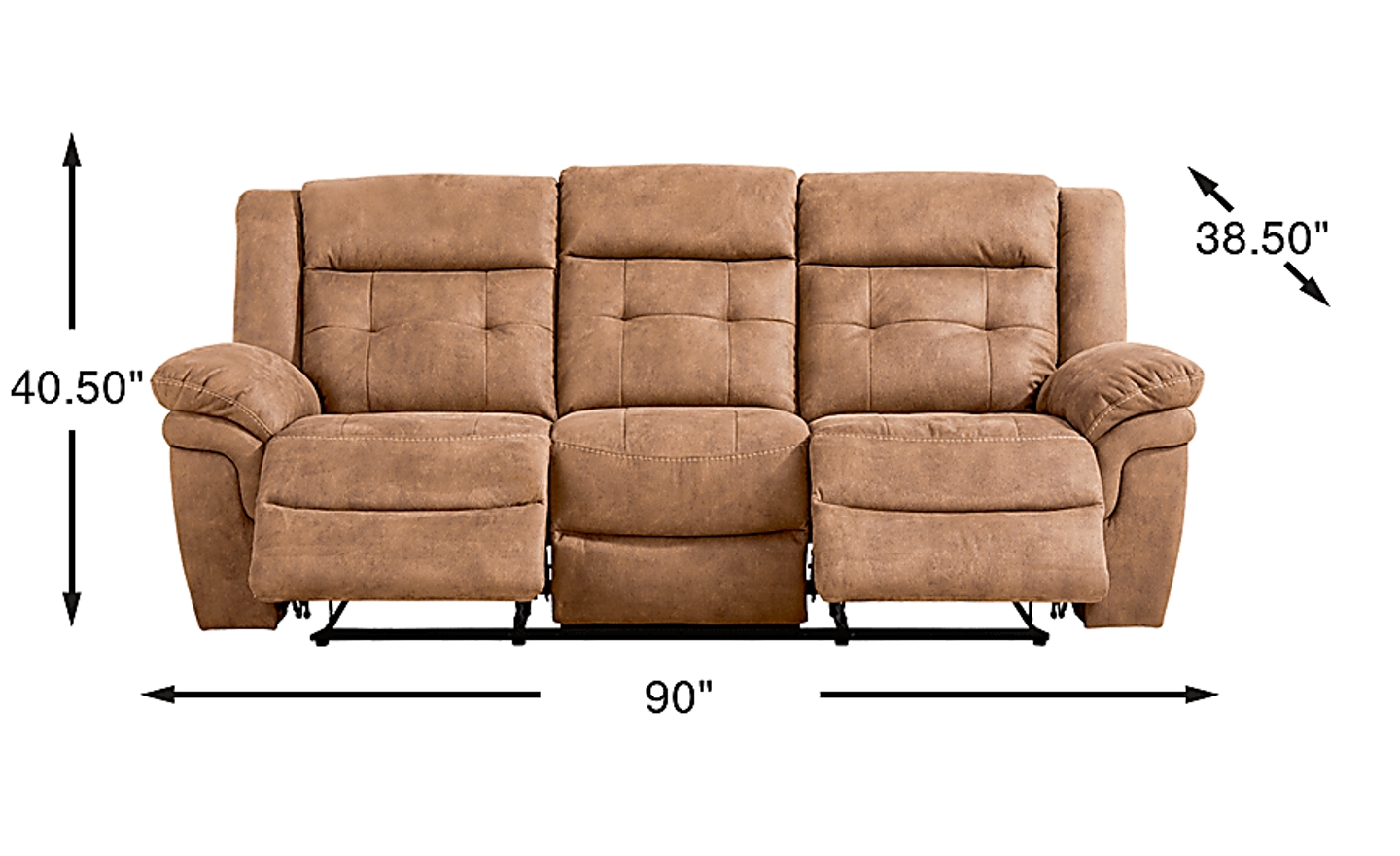 When planning your space, consider both the stationary and fully reclined dimensions. This sofa measures 90"W x 38.5"D x 40.5"H. Because it is a non-power reclining model, you must account for "recline clearance"—the space needed between the back of the sofa and the wall to allow the seat to tilt back, as well as the extension of the footrest in front. Our experts recommend measuring your doorway and hallway widths as well to ensure a smooth delivery of this full-sized three-seater.