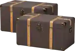 This set includes one larger trunk and one smaller trunk designed for versatile storage. The larger trunk measures approximately 26"W x 16"D x 15"H. This nested design is an excellent organizational solution for smaller spaces or urban apartments, as the smaller unit can be stored inside the larger one when not in use.
