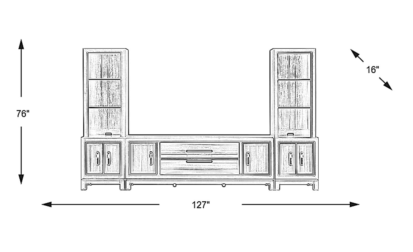 The clean lines, low profile design and calming wood grain details of the Hartney Mill wall unit hearten your space with a chic, contemporary storage solution. Crafted of poplar solids in a gray finish, this set features a 80-inch television console, a pair of enclosed bases and two hutches. Four cabinets across the console and bases offer fabulous storage with adjustable shelving for books, video games and other media. The open storage in the center of the console has a shelf and cable management cutouts in the back panel. The hutches are equipped to display gorgeous décor, movies, media and more with wire management holes of their own. Metal hardware in a nickel finish polishes the final look with sublime simplicity.