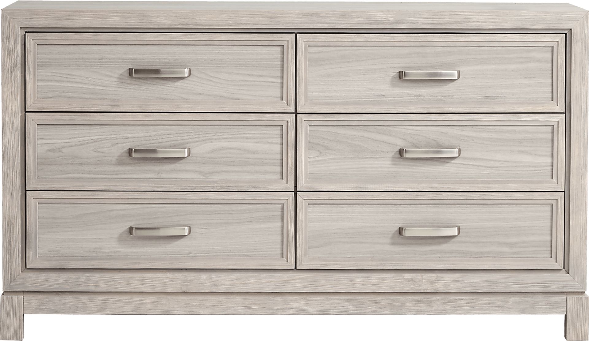 The Hartney Mill dresser features clean lines, an elegant panel design and a calming natural wood aesthetic. Featuring six drawers with dustproof bottoms and brushed nickel pulls, each is crafted with French dovetail joints and ball-bearing glides with levelers for added strength and longevity.