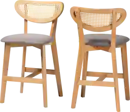 Elicit a sense of traditional grace for every occasion with the lovely Hartzler light brown counter stool, set of 2. This mid-century piece consists of a sturdy wood frame embellished with woven rattan. The rounded seat is padded with plush foam and upholstered in soft fabric for a lavish embrace while the crescent backrest provides smooth support. The Hartzler is fitted with an ergonomic footrest for convenient relaxation. Channeling the flare of classic design, the Hartzler brings charm to any occasion. Customer assembly is required.