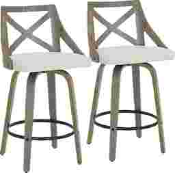 Spruce up your dining area with the Hasbrouck I cream counter stool set of 2. With elegant styling, the backrest shows off an X-shaped accent. Featuring light gray wood, fabric upholstery, and a swivel seat, the Hasbrouck I beautifully straddles the line between traditional and farmhouse styles. Customer assembly is required.