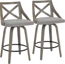 Spruce up your dining area with the Hasbrouck I gray counter stool set of 2. With elegant styling, the backrest shows off an X-shaped accent. Featuring light gray wood, fabric upholstery, and a swivel seat, the Hasbrouck I beautifully straddles the line between traditional and farmhouse styles. Customer assembly is required.
