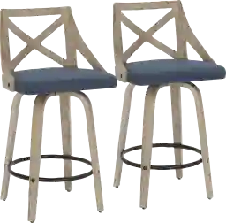 Spruce up your dining area with the Hasbrouck II blue counter stool set of 2. With elegant styling, the backrest shows off an X-shaped accent. Featuring whitewashed wood, fabric upholstery, and a swivel seat, the Hasbrouck II beautifully straddles the line between traditional and farmhouse styles. Customer assembly is required.