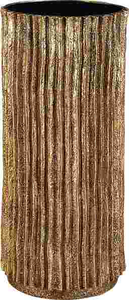 Waterfall textures make a dramatic statement in this petite Hashi Brass Accent Table. Finished in heavily textured antique gold with black glass top.