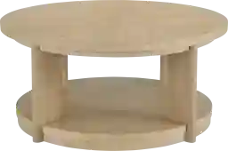 Transform your living space with the Hasia Coffee Table. Crafted from solid wood and finished in a calming, neutral hue, this table effortlessly combines strength and sophistication. Its circular design introduces a modern flair, while the lower shelf offers practical storage for your everyday essentials. Elevate your home decor with this elegant and functional piece, perfect for adding a touch of understated charm to any room. Customer assembly is required.