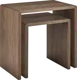 The fluid lines of the Hatchbar walnut brown nesting end table, set of 2 not only create a visually striking silhouette but also provide a seamless transition between surfaces, making them ideal for modern living. Perfect for showcasing decor or serving as a stylish centerpiece, these tables effortlessly combine form and function. Elevate your interior with the Hatchbar tables, where style and practicality harmoniously coexist.