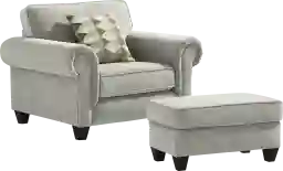 Where comfort is unspoken and togetherness is second nature, the Hathaway collection's gentle strength gathers memories and good times to fill the heart of home. This traditional chair and ottoman set features soothing woven fabric in bluestone, accented with welted seams throughout. Large roll arms invite guests to ease into the deep reversible seat cushion and angled back for relaxation and conversation. The included ottoman is an ideal footrest or extra seat. Completing the look with poise, each pyramid leg features a deep black finish. Upholstery: 100% Polyester. Cleaning Instructions: Use water based cleaning agents or foam.