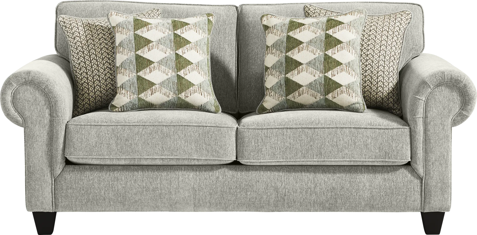 While this loveseat features traditional design elements like roll arms and welted seams, its bluestone color provides a fresh, light aesthetic that works well in compact spaces. The 76-inch width is ideal for smaller layouts where a full-sized sofa might feel overwhelming. Additionally, the pyramid legs elevate the frame, creating visual "white space" underneath the piece, which helps a small room feel larger and more open.