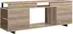 Upgrade your entertainment space with the Haugo console. This console can accommodate TVs up to 65 wide or 120 lbs. The black oak finish and metal accents give the console a modern, updated feel. The 23 electric fireplace insert features a realistic flame effect that can be used with or without heat. Use the remote control or touch panel to adjust the various flame and heat settings so your room is always comfortable. The insert plugs into a standard 120V outlet and heats a room up to 400 square feet. The divided top shelf is perfect for your cable box, audio equipment, and gaming consoles and features an open back to make plugging in devices easy. Organize your DVD and game collection on the 4 open side storage shelves to have easy access to your games and movies. Customer assembly required.