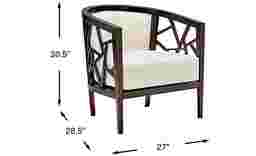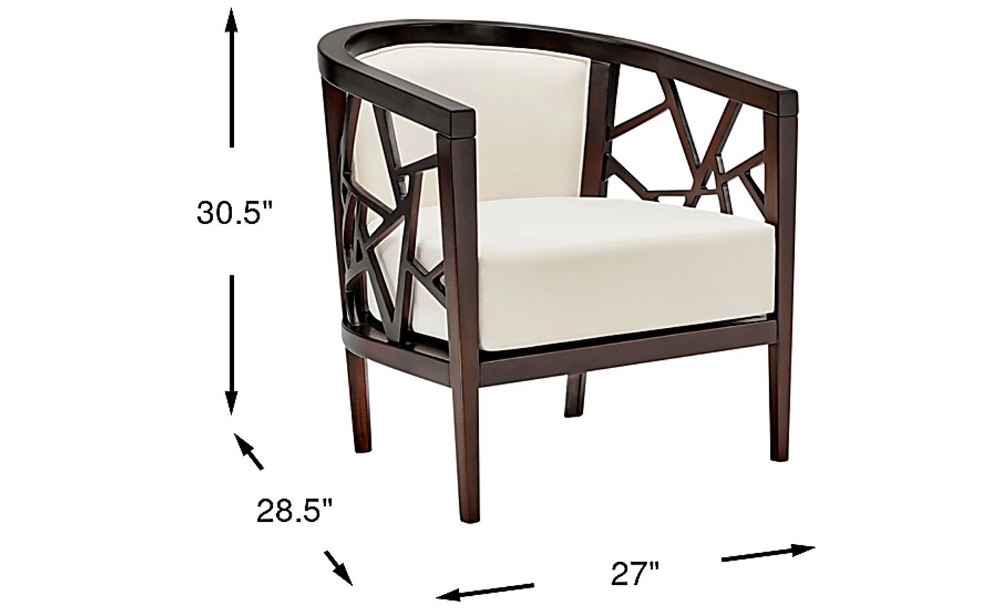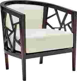Inspired by the rhythm and romance of its namesake city, the Havana chair captures effortless sophistication with a touch of tropical soul. Its mahogany brown frame features a curved barrel back with geometric artistry along its sides, while smooth cream upholstery softens the contemporary form with elegance and tranquility.