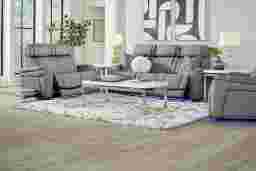 Ease into relaxation mode in a room full of life's finer comforts with the Haven Point collection, your ultimate lounge destination with ultra convenience wrapped in a luxurious look. Requiring just 3.5 inches from a wall to fully recline, this contemporary piece is a wall hugger with zero gravity reclining tech and power adjustable head and footrests. The panels have easy-to-use controls and even include USB-A and USB-C charging ports to juice up your favorite personal devices. The fold-down cupholder tray enhances your seating experience with wireless charging, reading lights and storage. The sofa's armrests have lighted cupholders and even more storage. Upholstered with durable, silky-smooth charcoal gray microfiber, the sofa's look is highlighted by top stitching alongside seams with contrast welting. Ambient blue base rail lighting finishes off the look with a sleek final touch. Upholstery: 85% Polyester 15% Polyurethane