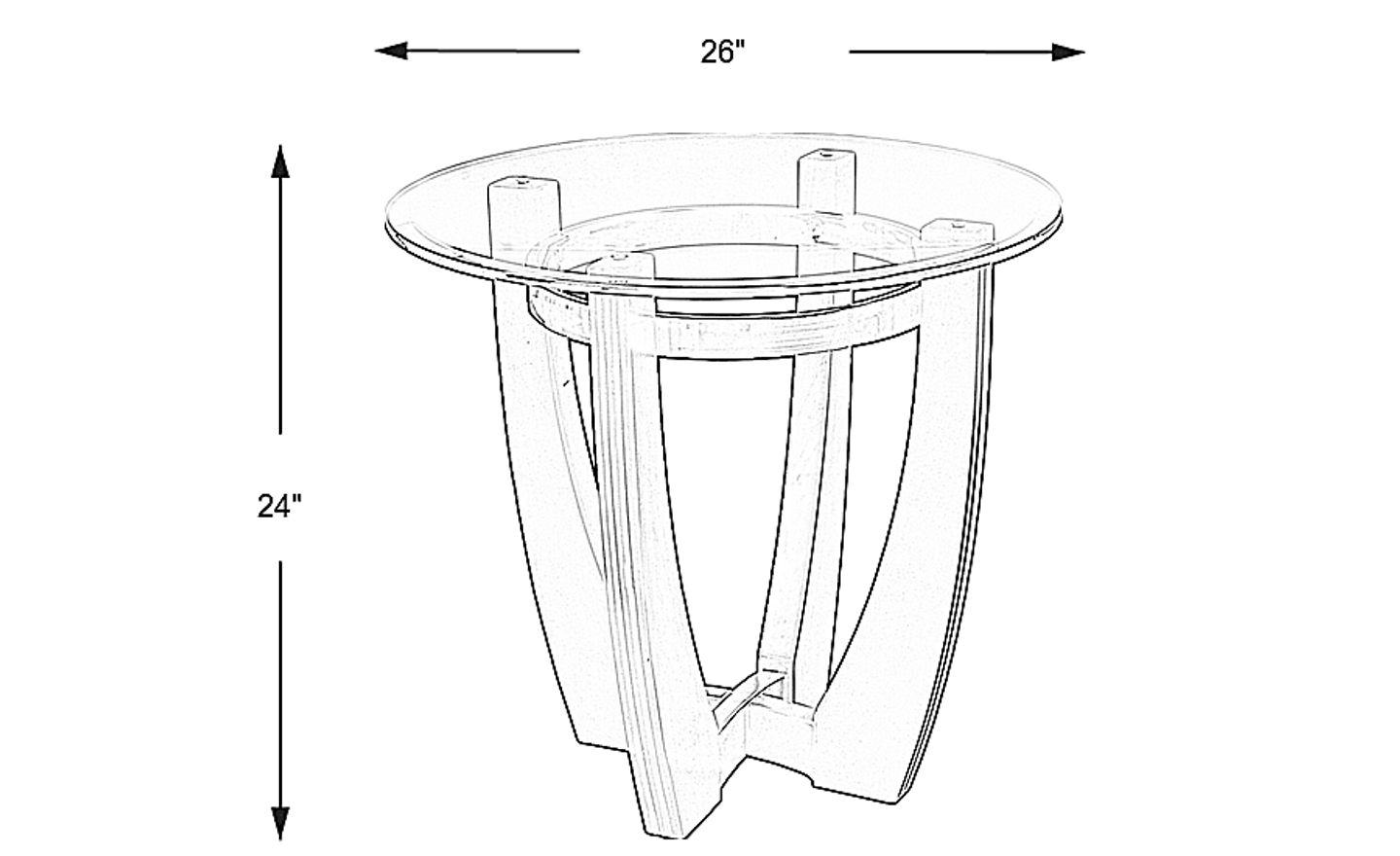 Topped with a 26 inch round glass top, the Haverhill end table offers a stylish addition to your room. Table is supported by a base made of wood solids with a rich walnut finish. The top of the base is enhanced with an eye appealing nickel finish.