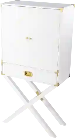 Featuring a transitional design, this cabinet serves as a versatile focal point that bridges modern and classic aesthetics. The crisp white finish and chic gold accents pair beautifully with neutral palettes like gray or beige for a sophisticated look. For a bolder approach, our design experts suggest incorporating pops of deep navy or rich emerald through nearby wall art or accent chairs to highlight the cabinet's modern feel.