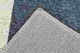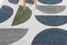 With a bright, bold spirit, the Havlund rug offers a vibrant twist on midcentury design, featuring friendly blue and green semicircles arranged across a neutral flatweave base. 100% Polyester.