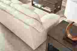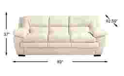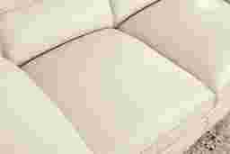 Soft light pours in, and the day finally slows into tranquility as the Hayworth collection invites a soothing ambiance with cloud-like comfort and sophisticated craftsmanship. Contemporary in style, this sofa is upholstered in cream-colored top grain leather where the body touches and features a plush, pillowy silhouette that invites supple, sink-in relaxation. Top-stitched seams and deep tufted backs add tailored charm, while low-profile square block legs in a rich brown finish provide a subtle yet grounded final touch. Upholstery: Top grain leather where the body touches and polyurethane fabric sides and backs. Leather is a durable, low maintenance product, however, general regular maintenance is necessary. To keep your leather clean, vacuum it regularly, removing any dust, and clean it with water and a mild non-detergent soap.