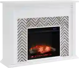 Add the hint of color your lifestyle craves with this Hazelhurst IV electric fireplace mantel. Classic two-tone hues contrast in real marble, crafting a zigzag pattern against a fresh white mantel. Glowing faux fire logs add ambiance with flickering LED flames and lifelike embers, with or without heat. Enhance the atmosphere of your home when you upgrade your living room or open concept living space. Customer assembly is required.