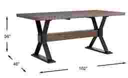 Get the best of both worlds with the rustic yet distinguished Hazelnut Woods counter height dining table. Crafted with acacia and hickory veneers, it claims a brown finish featuring wood grain details. This long, rectangular table showcases a beautiful double pedestal design with crossed metal accents. An 18-inch removable leaf allows you to extend the length of the tabletop to accommodate large parties.