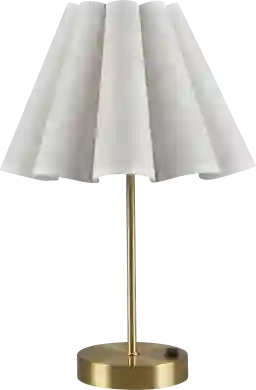 Elevate your space with the Hazlett Oaks Gold Lamp-where elegance meets practicality. Its gracefully tapered lamp shade features an elegant, pleated design in a chic linen color, adding a touch of sophistication to any room. Perfect for nightstands, side tables, or desks, it effortlessly enhances any room's ambiance. The gold base, equipped with touch control technology and 3-level dimmable settings allows you to adjust the lighting to suit your mood. Partial assembly may be required.