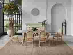 These chairs feature a sophisticated, polished look that fits seamlessly into contemporary, coastal, or "modern boho" aesthetics. The neutral beige and natural wood tones serve as a versatile foundation. We recommend pairing them with other organic textures, such as jute rugs or linen textiles, to enhance their natural warmth and create a balanced, inviting dining atmosphere.