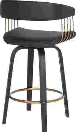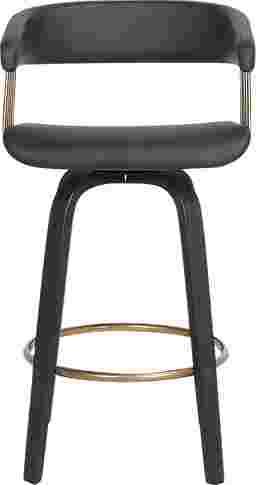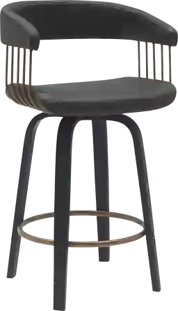 Bring refined style and sophistication to your counter with the Hearttime II black counter height stool. A beautifully curved back and seat are held together with a crisp and clean-lined frame to make a statement in any corner. Its hugging barrel back and contoured seat is generously padded to offer sink-in comfort. Complemented with sculptural bentwood legs and a metal footrest, this stool blends eye-catching style with a dose of comfort and functionality. It is upholstered in faux leather which does not crack or fade easily, the material is both stain and UV resistant for easy maintenance and longevity. For supreme functionality, the counter stool is fitted with a wonderful 360-degree swivel function, allowing you to join conversations with ease. Customer assembly is required.