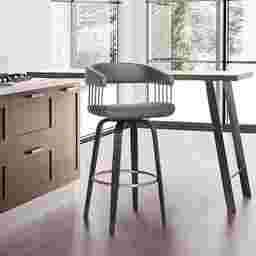 Bring refined style and sophistication to your counter with the Hearttime II gray counter height stool. A beautifully curved back and seat are held together with a crisp and clean-lined frame to make a statement in any corner. Its hugging barrel back and contoured seat is generously padded to offer sink-in comfort. Complemented with sculptural bentwood legs and a metal footrest, this stool blends eye-catching style with a dose of comfort and functionality. It is upholstered in faux leather which does not crack or fade easily, the material is both stain and UV resistant for easy maintenance and longevity. For supreme functionality, the counter stool is fitted with a wonderful 360-degree swivel function, allowing you to join conversations with ease. Customer assembly is required.