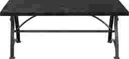Details abound in the industrial-inspired Heath brown cocktail table with stamped metal braces and rivet detailing. Its distinctive design details include a hardwood tabletop with a lightly distressed charcoal finish over birch veneers and a bottom stretcher with hexagonal bolt accents. Some customer assembly required.
