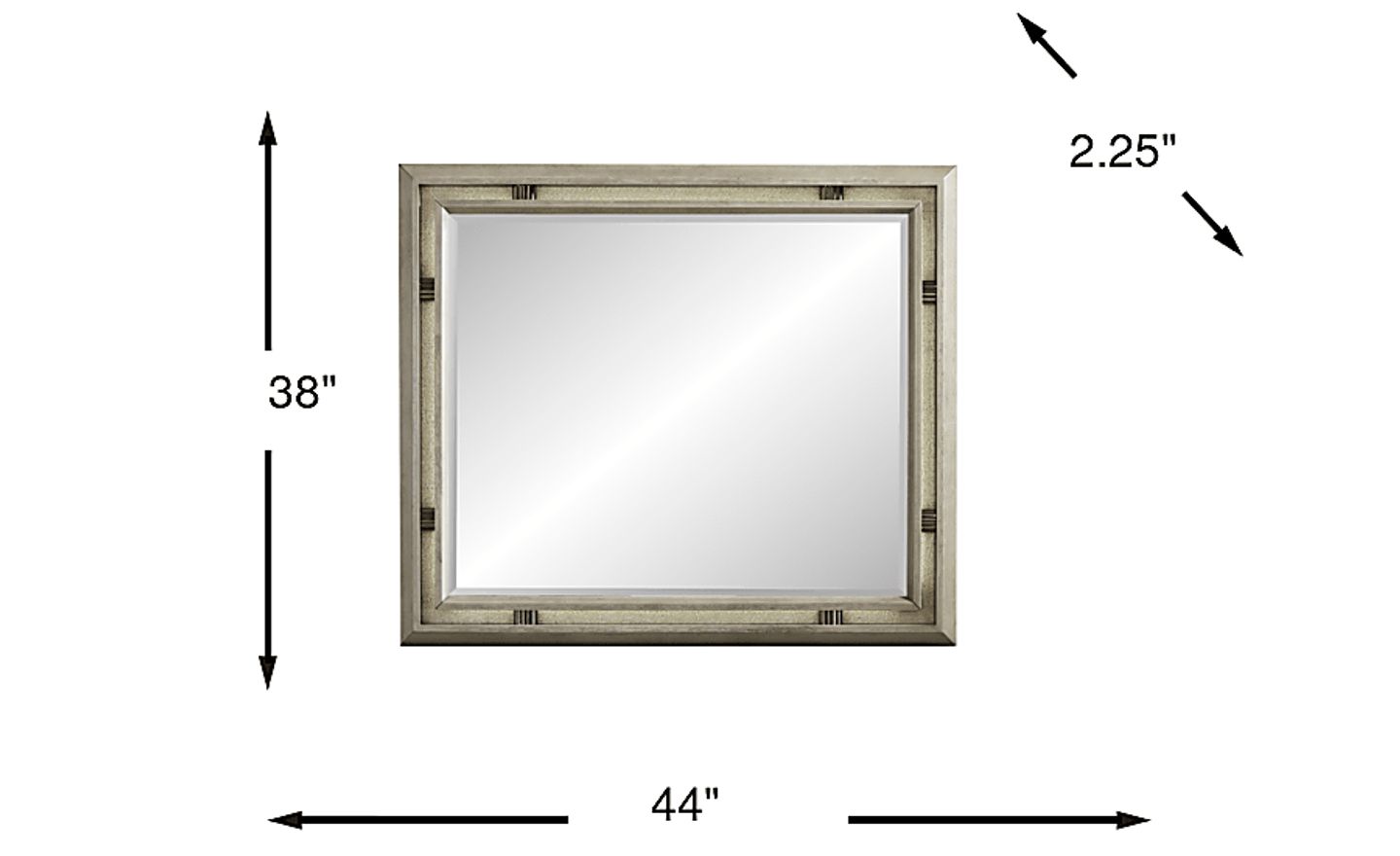 For a balanced look, a mirror should typically measure between two-thirds and three-quarters the width of the dresser it sits upon. With a width of 44 inches, this mirror is perfectly scaled for larger dressers—such as the matching 66-inch Heiress Gray Dresser—ensuring the pieces feel like a cohesive, intentional set rather than two separate items.