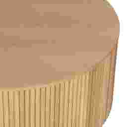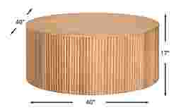 The serene spirit of nature comes to life in the Hendrik collection, where richly organic tones and textures ground your home in timeless warmth. Transitional in style, this round cocktail table features oak veneers in a natural brown finish. The smooth, flat top offers ample surface space for serving or styling, while the base is wrapped with vertical wooden slats that add depth and dimension.