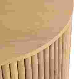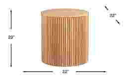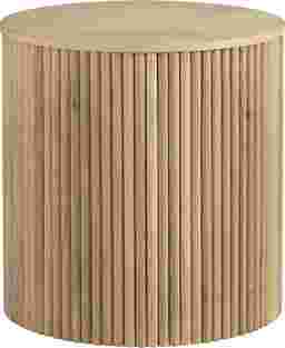 The serene spirit of nature comes to life in the Hendrik collection, where richly organic tones and textures ground your home in timeless warmth. Transitional in style, this round end table features oak veneers in a natural brown finish. The smooth, flat top offers ample surface space for styling, while the base is wrapped with vertical wooden slats that add depth and dimension.