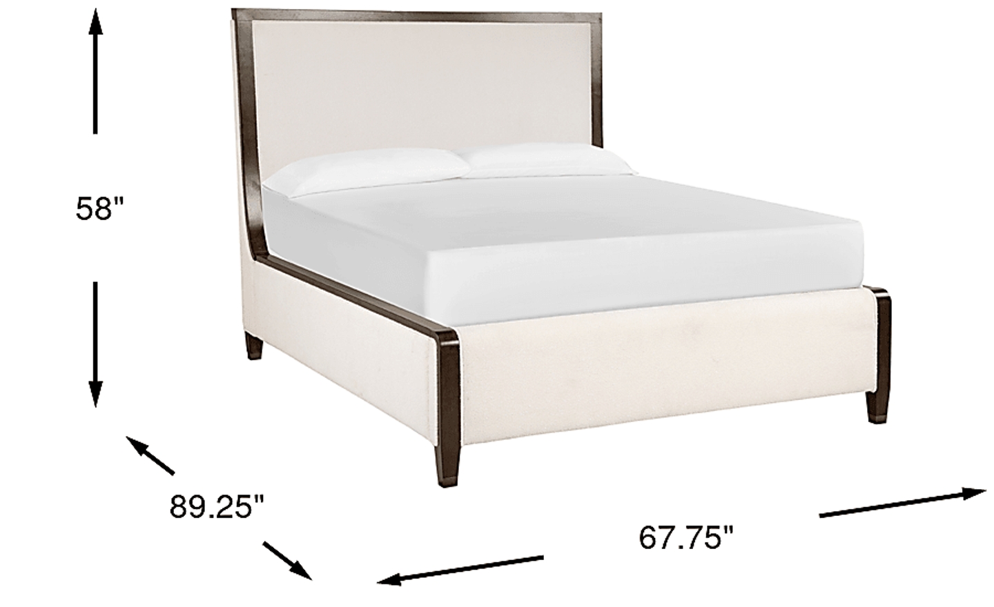 The quiet luxury of a sophisticated boutique vacation stay takes form in the Henley collection, where layers of rich texture and refined shapes anchor every corner. Rooted in contemporary style, this bed features an upholstered headboard and footboard panel in soft ivory fabric. A rich dark brown frame crafted of Mappa Burl and China birch veneers borders each panel, bringing dimension and depth through natural wood-like grain and clean lines. Mattress and foundation (if required) sold separately.