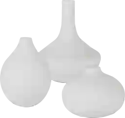This set includes three varying silhouettes designed to create a layered visual effect. The large vase measures 9.75"W x 9.75"D x 12"H, the medium vase is 7.5"W x 10.5"D x 7.5"H, and the small vase measures 8"W x 6"D x 8"H. These diverse sizes allow you to style them as a cohesive cluster or distribute them across different surfaces in a room to tie a design theme together.