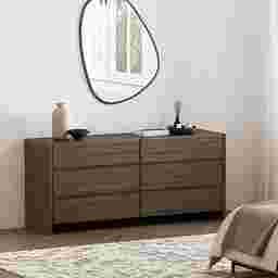 The Herosunny brown dresser blends clean lines with soft edges for a look that's both minimal and inviting. The subtle wood grain texture adds warmth and depth, while the seamless drawer fronts lend a clean, sculptural presence. Designed with versatility in mind, each piece offers functional storage that fits effortlessly in your bedroom. Customer assembly is required.