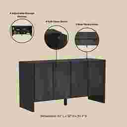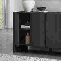 The Herosunny dark gray sideboard blends clean lines with soft edges for a look that's both minimal and inviting. The subtle wood grain texture adds warmth and depth, while the seamless drawer fronts lend a clean, sculptural presence. Designed with versatility in mind, each piece offers functional storage that fits effortlessly in your bedroom. Customer assembly is required.