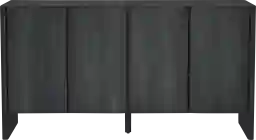 While these terms are often used interchangeably, a buffet is typically specific to the dining room for serving food, whereas a sideboard like this one is a more versatile storage piece suitable for a dining room, living room, or hallway. This modern sideboard features a sculptural four-door design that prioritizes both form and functional storage, making it adaptable to various rooms in your home.