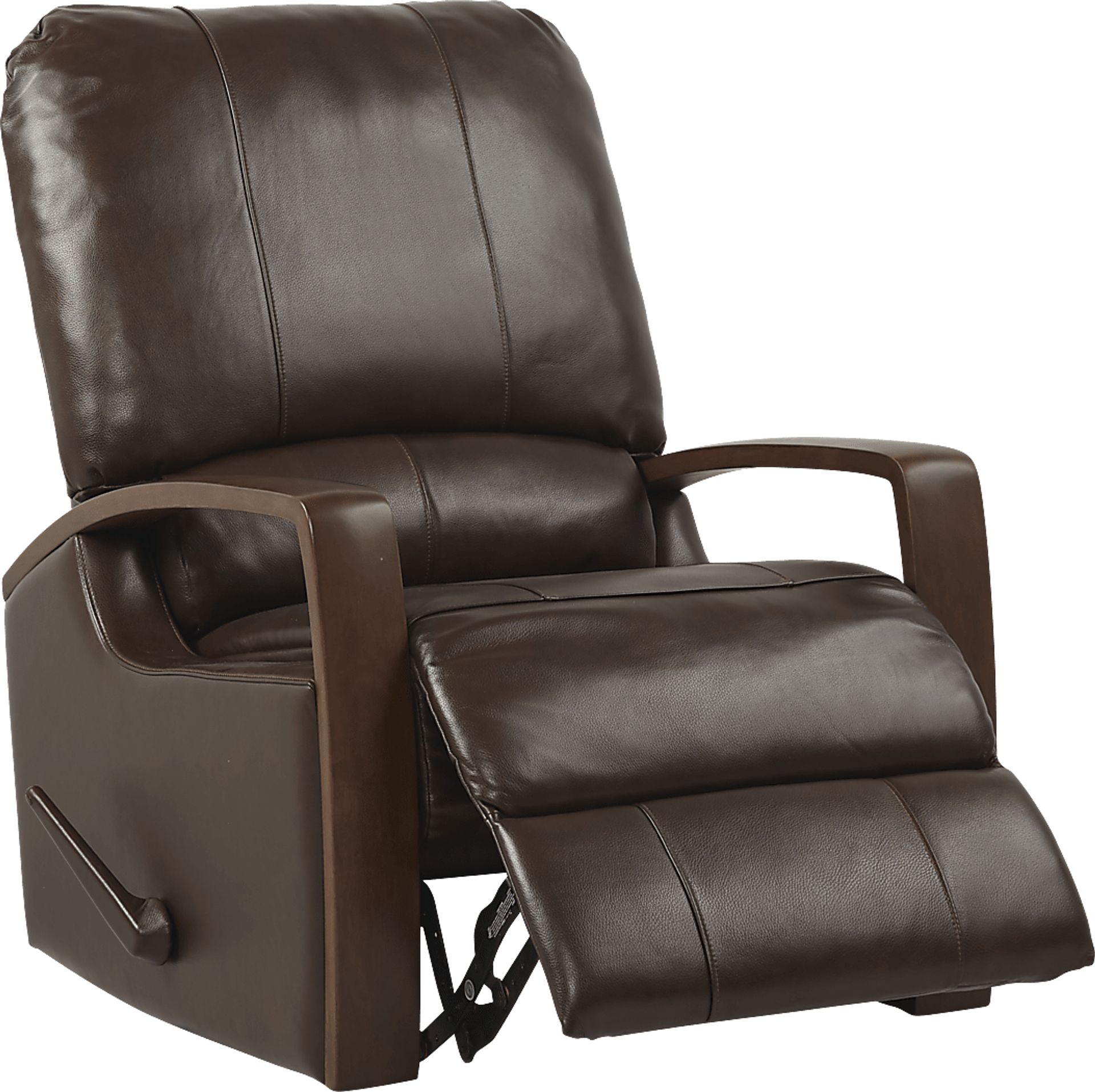 The Heston recliner offers elegant midcentury style with the added comfort of a reclining design. A swivel base makes conversation a breeze, and luxurious chocolate color leather where the body touches, sinuous wire seating system and sleek wooden arms create an effortlessly transitional piece that can enhance any living room. Top grain leather where the body touches.