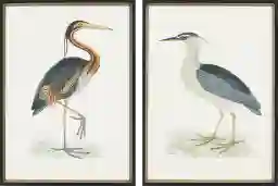 Yes, these prints are specifically designed with a vintage aesthetic, featuring herons in muted brown and multi-colored tones. The combination of the classic subject matter and the distressed silver leaf framing makes them an ideal choice for traditional, casual, or "old-world" interior designs.