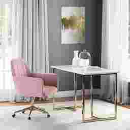 A perfect place to run your business from home, this Hidatas desk is an ideal anchor for your workspace. Crafted from laminated marble, steel, and manufactured wood, this desk will look like a million bucks in your home office. Customer assembly is required.