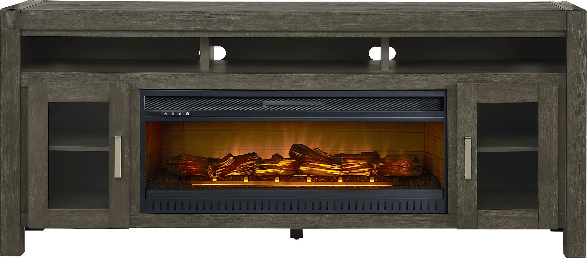 Hidden Springs II Gray 80 In. Console With Electric Log Fireplace