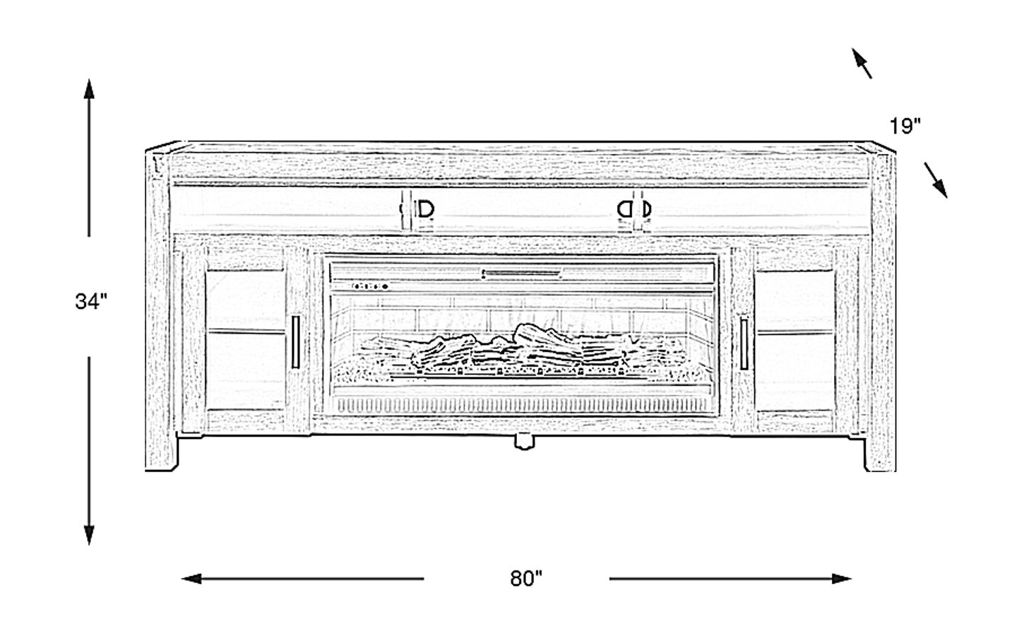 Offering the perfect place for your flat screen TV, the Hidden Springs II console is an excellent addition to your home entertainment set-up. Crafted from acacia solids and veneers, the piece's gray finish is complemented by hardware that has a stunning nickel sheen. From the added depth to the 3D realism, you'll love the electric log fireplace's innovative flame effects. The remote control adjusts the artificial flame and glow levels and includes a built-in timer (from 30 minutes to 60 hours). The thermostat ranges from 62 degrees to 82 degrees and is adjustable. Each wing of the 80-inch console is equipped with shelves that are encased by glass panel doors. The center of the piece features a shelf that is divided into three parts for speakers, media players, gaming systems and more. Holes in the rear panel of the piece allow wires to reach sockets and help keep cords organized and free of tangle.