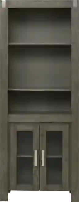 Offering the perfect storage solution for a lively living room, the Hidden Springs pier is a wonderful addition to your home. Crafted from acacia solids and veneers, the gray finish is complemented with nickel drawer pulls. Three open shelves provide an ideal place for books, media and accessories. At the bottom, two shelves behind glass doors offer a great spot for displaying treasured keepsakes.