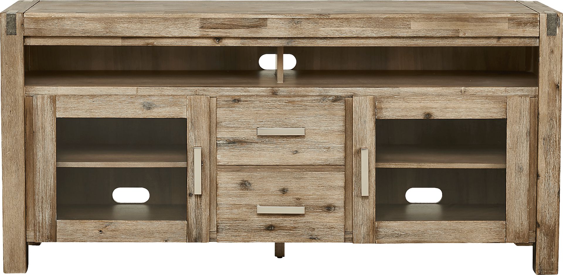 Offering the perfect entertainment hub for a lively living room, the Hidden Springs console is a wonderful addition to your home. Crafted with acacia veneers, the natural finish is complemented with nickel drawer pulls. Three passthrough holes in the back help keep wires organized, while the central cubby and side cabinets provide a great place for electronic components or gaming systems. Two center drawers provide plenty of room for storing additional media.