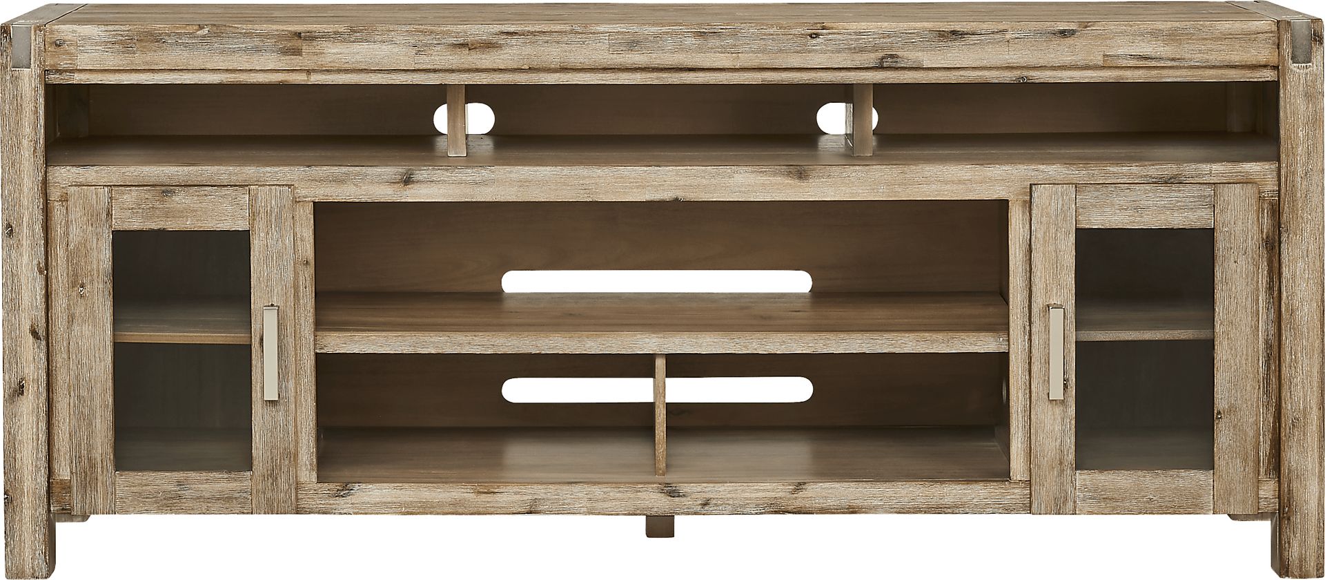 Offering the perfect entertainment hub for a lively living room, the Hidden Springs console is a wonderful addition to your home. Crafted with acacia veneers, the natural finish is complemented with nickel drawer pulls. Three open middle compartments have passthrough holes in the back that help keep wires organized, while providing a great place for electronic components or gaming systems. Two glass door cabinets provide plenty of room for storing additional media or displaying items.
