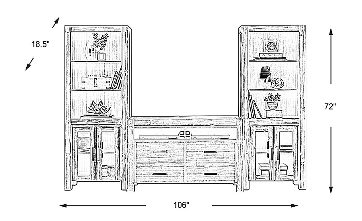 Offering the perfect place for your flat screen TV and more, the Hidden Springs II wall unit is a wonderful addition to your home. Crafted from acacia solids and veneers, the brushed tan finish is complemented with nickel drawer pulls. Two open compartments with one pass through hole in the back help keep wires organized, while providing a great place for electronic components or gaming systems. Two closed door lower cabinets each contain an adjustable shelf, offering plenty of additional hidden storage. Side piers complete the unit with more shelves for display and storage.