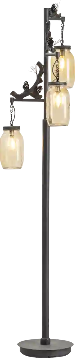 For a lamp with its own personality, the High Lane floor lamp offers a whimsical feel with mason jar overlay covers and an antique rust finish. Partial assembly required.
