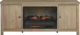 Effortlessly stylish and thoughtfully designed, the High Mountain collection makes it easy to stay organized and fully immersed in your home entertainment space. This contemporary console features a natural finish and a handsome square-shaped frame that delivers a timeless, grounded look. Rear wire management holes in the dual cabinets provide a clutter-free setup, while adjustable shelves offer flexible storage to support your organization needs. At the center, a removable log fireplace with flickering flames and faux embers, working with or without heat for a warm ambiance year-round.