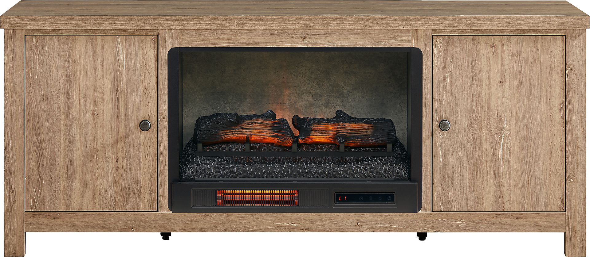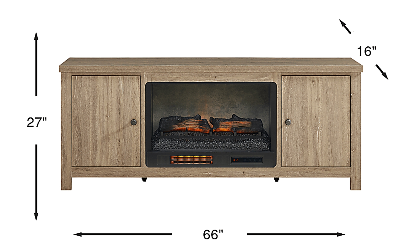 High Mountain Oak Finish 66 In. Console With Electric Log Fireplace