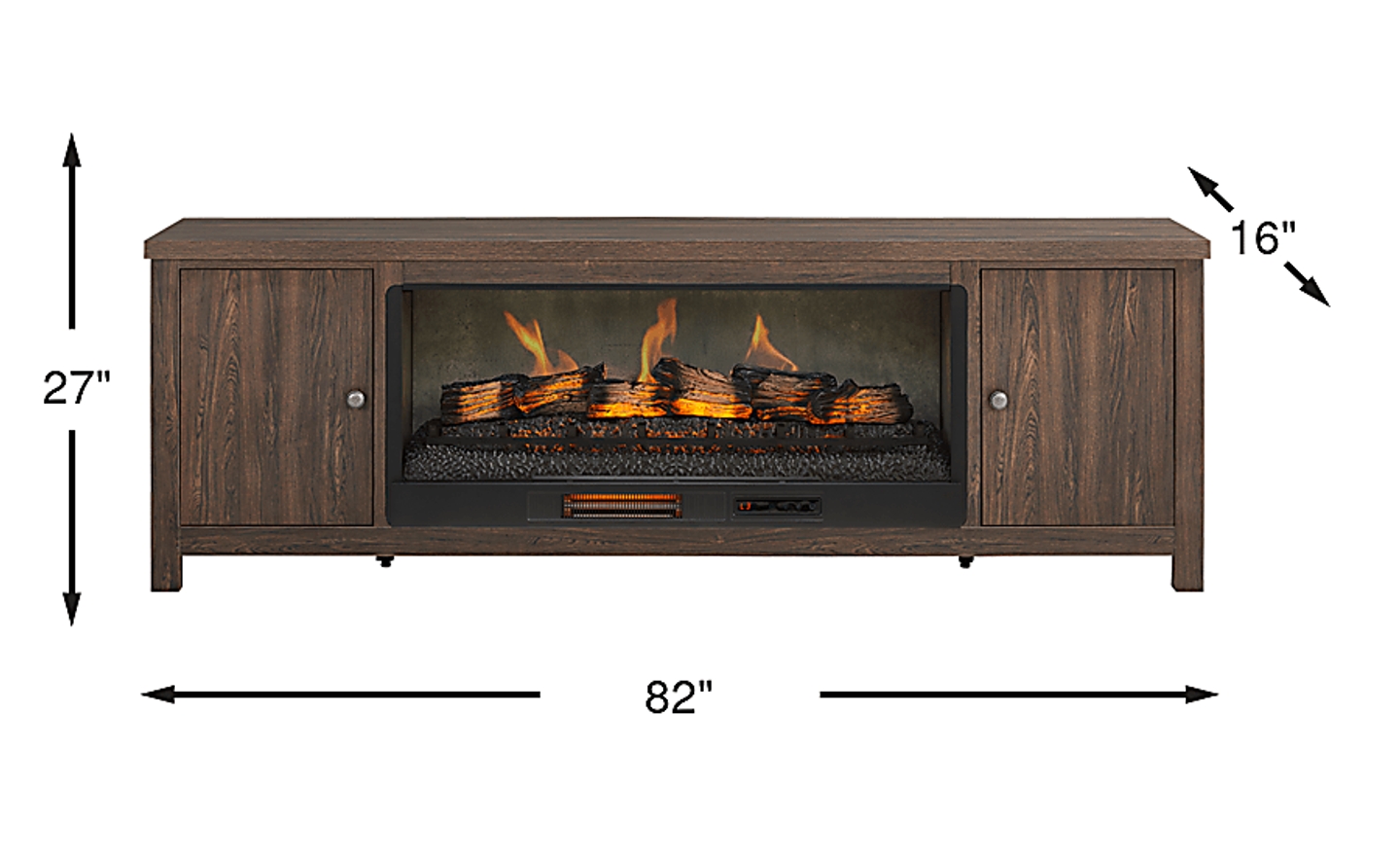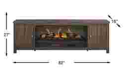 Effortlessly stylish and thoughtfully designed, the High Mountain collection makes it easy to stay organized and fully immersed in your home entertainment space. This contemporary console features a rich dark oak finish and a handsome square-shaped frame that delivers a timeless, grounded look. Rear wire management holes in the dual cabinets provide a clutter-free setup, while adjustable shelves offer flexible storage to support your organization needs. At the center, a removable log fireplace with flickering flames and faux embers, working with or without heat for a warm ambiance year-round.